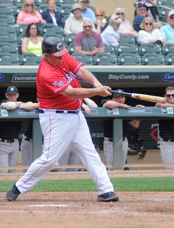 A few years ago I got to play on big league spring training fields at the 35+ World Series in Tempe, AZ, and that was pretty cool. But to walk into the dugout at Target Field, to jog around the warning track, to play catch in the outfield, to have your name announced in a major league ballpark, well, that's something else entirely. When I found out we were playing in the Townball Classic this year, I confess that I was really excited, but to be honest, the experience was more special than I ever expected. Not to sound like a sap, but it was surreal, almost magical. For a few hours, a bunch of guys who have the honor of representing the town of New Market got to live out a dream.